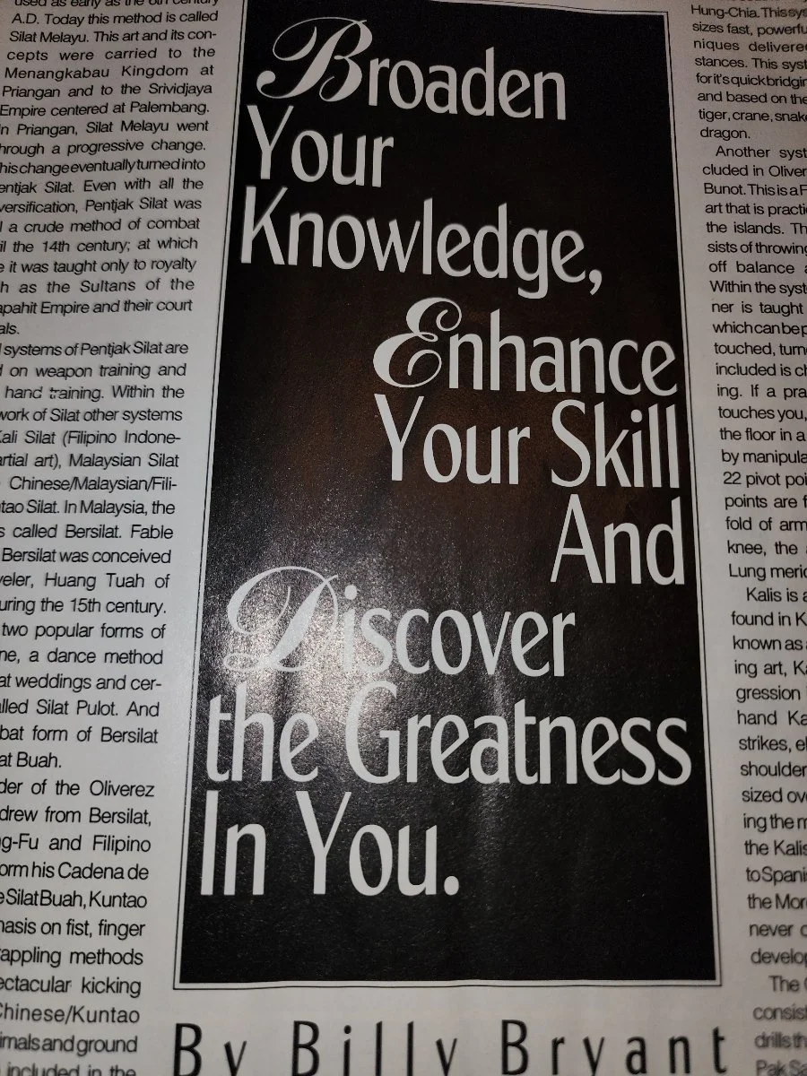 Inside Karate Magazine April 1995, Vol. K48667, Pages 32-35, Article by Grandmaster Billy Bryant, Broaden Your Knowledge & Enhance Your Skill and Discover the Greatness In You.